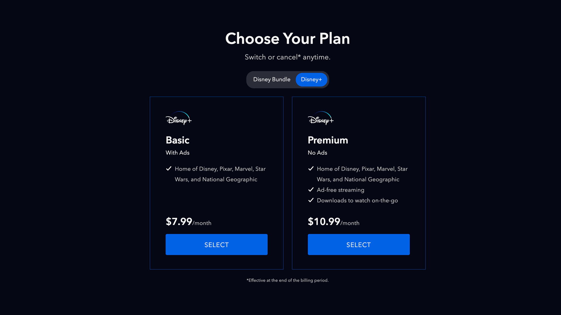 Streaming premium da Disney com conteúdo Marvel, Star Wars, Pixar, National Geographic e Star.