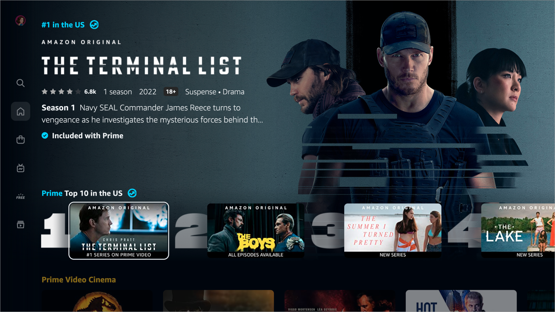 Streaming da Amazon com conteúdo original, filmes e séries. Integração com ecossistema Amazon.